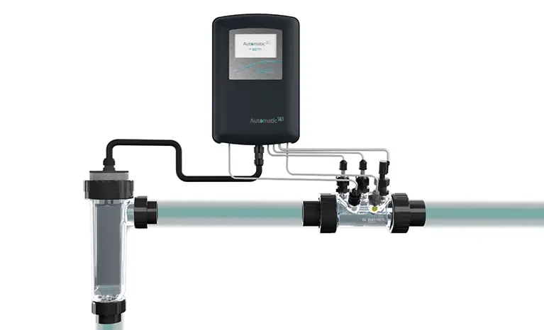- Analyse automatiquement et précisément la valeur du et la teneur en chlore (sonde redox)