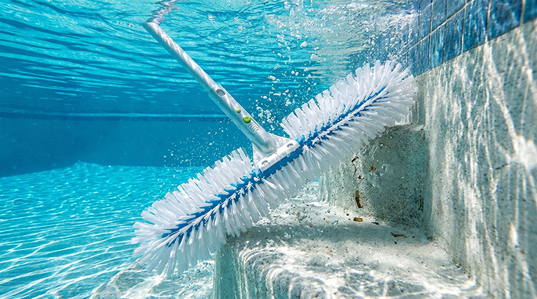 Les algues et les biofilms ont tendance à se loger dans les recoins les plus difficiles d'accès. Grâce à sa configuration unique double face, la brosse 360° SolidPool s'insinue là où les brosses traditionnelles ne parviennent pas, notamment sous les rebords des marches et dans les angles arrondis du fond. Ses soies denses et résistantes décollent en profondeur les dépôts les plus tenaces sans agresser les revêtements, préservant ainsi la longévité de votre piscine et la qualité de l'eau tout au long de la saison.